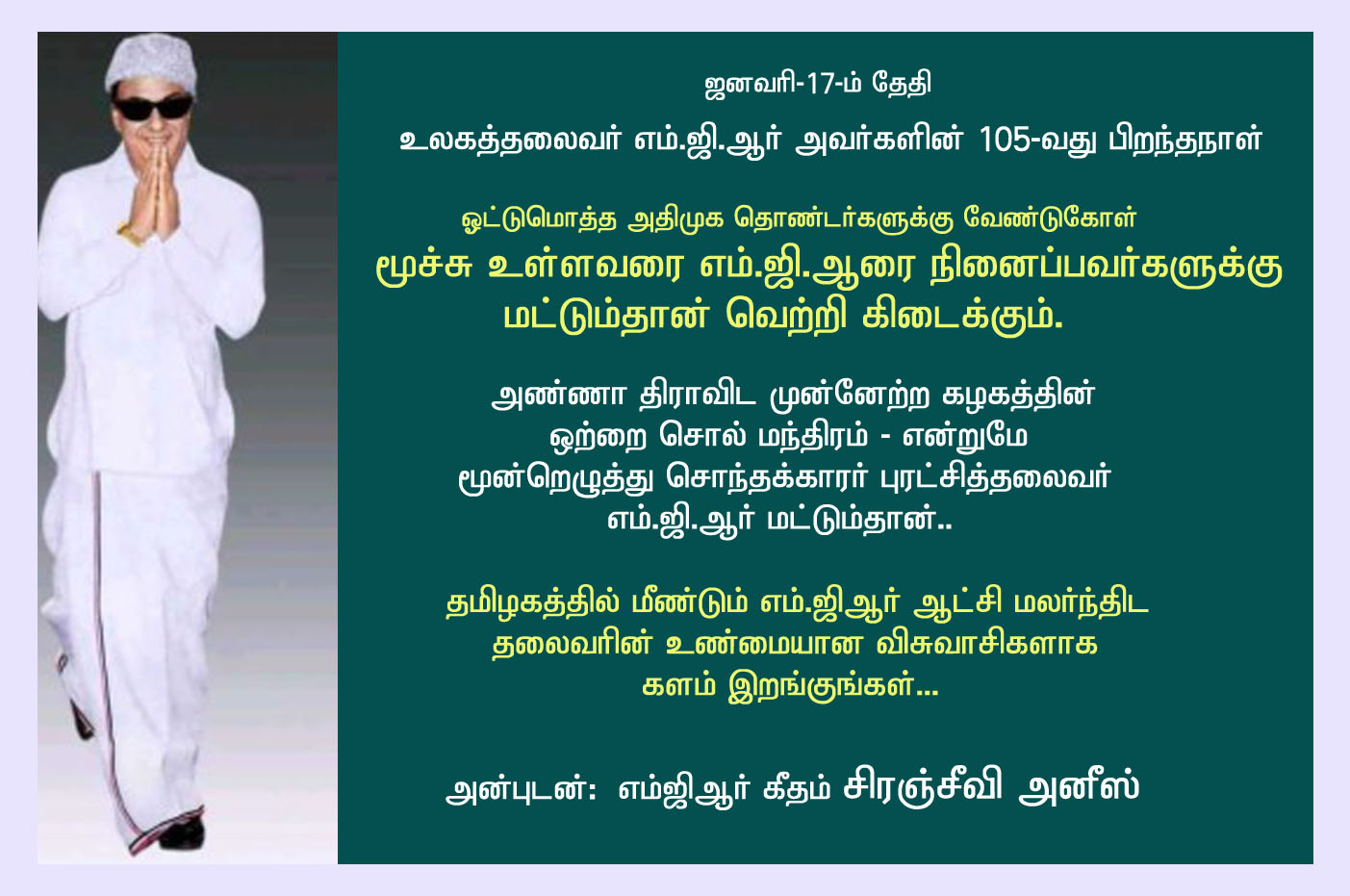 ஜனவரி 17, அவருடைய இந்த பொன்னான 105வது பிறந்தநாளில் அனைவரும் சபதம் ஏற்போம்..