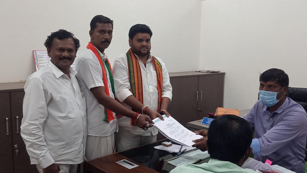 தஞ்சை மாநகராட்சி,51- வது, வார்டு கவுன்சிலர் பதவிக்கு, பாரதிய ஜனதா கட்சி சார்பில் போட்டியிடும், விக்னேஷ் குமார் ராஜா , மாநகராட்சி அலுவலகத்திற்கு, தனது ஆதரவாளர்களுடன், வேட்பு மனு தாக்கல் செய்ய வந்தார். அதன் பின்பாக, உதவி தேர்தல் நடத்தும் அலுவலர்,ராஜ சேகரனிடம் தனது வேட்பு மனுவை தாக்கல் செய்தார்.