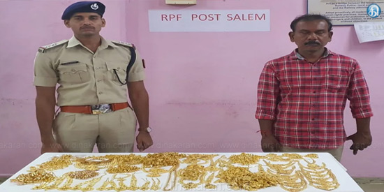 சேலம்: கோயம்பத்தூரில் இருந்து சென்னை சென்ற ரயிலில் உரிய ஆவணம் இன்றி கொண்டு சென்ற 1.77 கோடி ரூபாய் மதிப்பிலான 3.9 கிலோ தங்க நகைகளை சேலம் ஜங்ஷனில் வைத்து , ரயில்வே பாதுகாப்பு படையினர் பறிமுதல் செய்தனர். சேலம் வழியே சென்ற ரயிலில் ஆவணங்கள் இன்றி எடுத்துச் செல்லப்பட்ட ரூ.1 கோடியே 77 லட்சம் மதிப்பிலான தங்க நகை பறிமுதல் செய்யப்பட்டு விசாரணை நடக்கிறது. தமிழகத்தில் பல்வேறு இடங்களுக்கு அரசுக்கு வரியினங்கள் செலுத்தாமல் தங்கம், வெள்ளி நகைகளை கடத்தும் சம்பவம் தொடர்ந்து நடந்து வருகிறது.