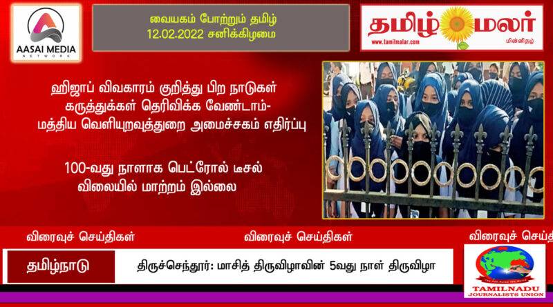 Read Moreஇந்தியாவின் உள்நாட்டு விவகாரங்களில் கருத்து தெரிவிப்பதை தவிர்க்குமாறு உலக நாடுகளுக்கு எச்சரிக்கை. கர்நாடக ஹிஜாப் பிரச்சினை குறித்து அமெரிக்கா கருத்து. அமெரிக்காவின் கருத்துக்கு இந்தியா கண்டனம். தமிழ்மலர்