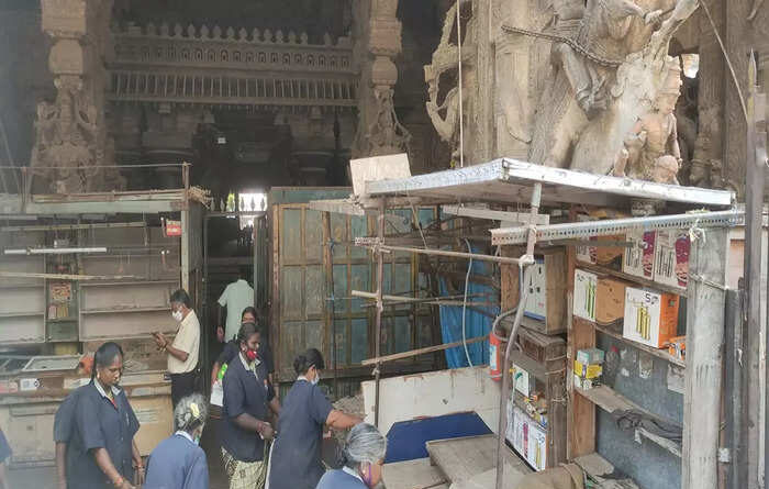 மதுரை மீனாட்சி அம்மன் கோயிலில் கடைகள் அகற்றம்!!!