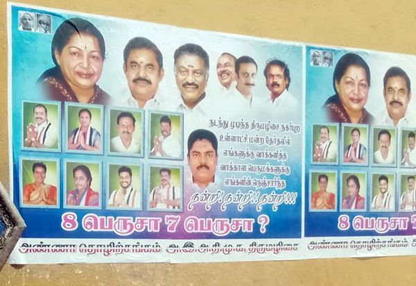 திருமழிசை: திருமழிசை பேரூராட்சியில் எட்டு பெருசா, ஏழு பெருசா என்ற சுவரொட்டிகளால் பரபரப்பு ஏற்பட்டுள்ளது. அதிக ஓட்டுகள் வாங்கிய எங்களை தோற்றதாக தெரிவித்ததாக, அ.தி.மு.க.,வினர் அதில் குறிப்பிட்டுள்ளனர். தி.மு.க., நபரை தலைவராக தேர்ந்தெடுத்ததில் முறைகேடு நடந்துள்ளதாக, ஏற்கனவே புகார் அளித்துள்ளோம். ஆனால் நடவடிக்கை எடுக்கவில்லை.எட்டு பேர், அ.தி.மு.க.,வின் தலைவர் வேட்பாளருக்கு ஓட்டளித்த நிலையில், இரு ஓட்டு செல்லாதது என அறிவித்தது தவறு. இதற்கு தேர்தல் ஆணையம் கண்டிப்பாக நடவடிக்கை எடுக்க வேண்டும் என்பதற்காக தான், சுவரொட்டி ஒட்டிஉள்ளோம்.