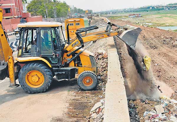 இத்திட்டத்தின் கீழ் வைகை கரை ரோடு சீரமைக்கப்பட்டு வருகிறது. ரோட்டோரம் ஆங்காங்கே தனியார் கொட்டியுள்ள கட்டட இடிபாடுகள், குப்பையை மண் அள்ளும் இயந்திரம் மூலம் கான்ட்ராக்டர்கள் ஆற்றுக்குள் கொட்டுகின்றனர். கரையோரத்தை சமன்படுத்துவதற்காக இப்படி செய்வதாக கூறினாலும் குப்பையையும் சேர்த்து கொட்டுவது எந்த விதத்தில் நியாயம்.