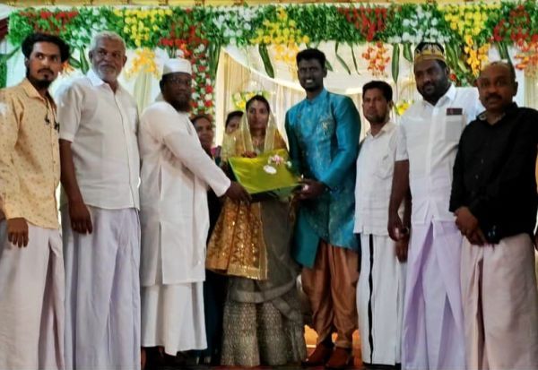 மயிலாடுதுறை, சின்ன எரகலி தெருவைச் சேர்ந்தவர் புருஷோத்தமன், 30; கிராம நிர்வாக அலுவலராக பணியாற்றி வருகிறார். இவருக்கு, திருவையாறைச் சேர்ந்த புவனேஸ்வரி, 26, என்ற பட்டதாரி பெண்ணை நிச்சயம் செய்தனர். குழந்தை பருவத்தில் இருந்து முஸ்லிம், கிறிஸ்துவர்களுடன் நெருங்கி பழகிய புருஷோத்தமன், தன் திருமணத்தை, மதநல்லிணக்கத்தை வெளிப்படுத்தும் விதத்தில் நடத்த வேண்டும் என பெற்றோரிடம் தெரிவித்ததோடு, மணப்பெண் வீட்டாரிடமும் தெரிவித்துள்ளார்