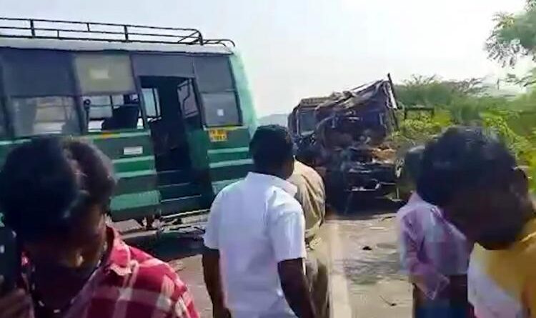 தனியார் பஸ், டிராக்டரை முந்த முயன்றபோது விபத்து…