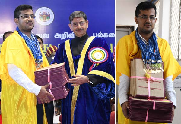 சென்னை : திருநெல்வேலி கால்நடை மருத்துவ கல்லுாரியில் பி.வி.எஸ்சி., பட்டம் படித்து பல்கலை அளவில் முதலிடம் பிடித்த மாணவர் சங்கர் 26 பதக்கங்களை பெற்று சாதனை படைத்துள்ளார்.