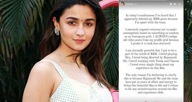 இதனால் கோபத்தில் இருந்த நடிகை அலியா பட் ஆர்ஆர்ஆர் படம் தொடர்பாக தனது இன்ஸ்டாகிராம் பக்கத்தில் பதிவிட்டு இருந்த போஸ்டர்களையும், வீடியோக்களையும் தூக்கி விட்டதாக பரபரப்பு தகவல்கள் வெளியானது.