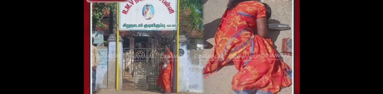 தூத்துக்குடி மாவட்டம் திருச்செந்தூர் அருகே பள்ளிக்குள் செல்ல அனுமதிக்கவில்லை.இரண்டு மணி நேரமாக காத்திருந்த தலைமையாசிரியைமயங்கி விழுந்தார்! .திருச்செந்தூர் அருகே சிறு நாடார் குடியிருப்பு பகுதியில் உள்ள ஆர்.எம்.வி