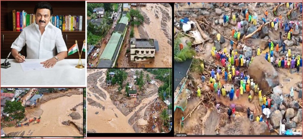 ಕೇರಳದ ಸಂಕಷ್ಟದ ಸಂದರ್ಭದಲ್ಲಿ ತಮಿಳುನಾಡು ಸರ್ಕಾರ ನೆರವು ನೀಡಲು ಸಿದ್ಧವಿದೆ ಎಂದು ಮುಖ್ಯಮಂತ್ರಿ ಎಂ.ಕೆ.ಸ್ಟಾಲಿನ್ ಹೇಳಿದ್ದಾರೆ. ವಯನಾಡಿನಲ್ಲಿ ಭೂಕುಸಿತದಿಂದ ಅಮೂಲ್ಯ ಜೀವಗಳನ್ನು ಕಳೆದುಕೊಂಡಿರುವುದು ನನಗೆ ದುಃಖ ತಂದಿದೆ.