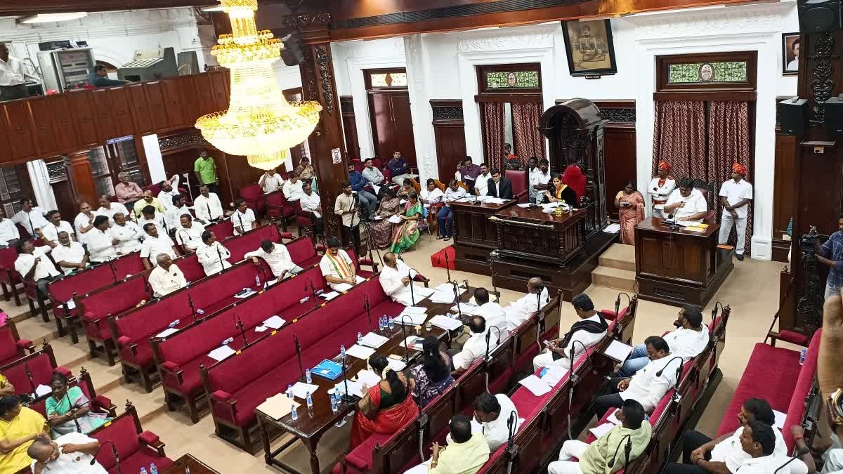 चेन्नई नगर निगम परिषद की बैठक में कांग्रेस और माध्यमिक के सदस्यों ने केंद्रीय बजट की प्रति फाड़कर विरोध जताया