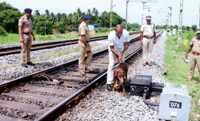வேலூர் ரயில்கள் மீது கற்கள் வீசுதல், தண்டவாளத்தில் கற்கள் அல்லது இரும்பு பொருட்களை வைத்தல் போன்ற சதி செயல்களை தடுக்கும் வகையில் காட்பாடியில் மோப்பநாய் கொண்டு ரயில்வே
