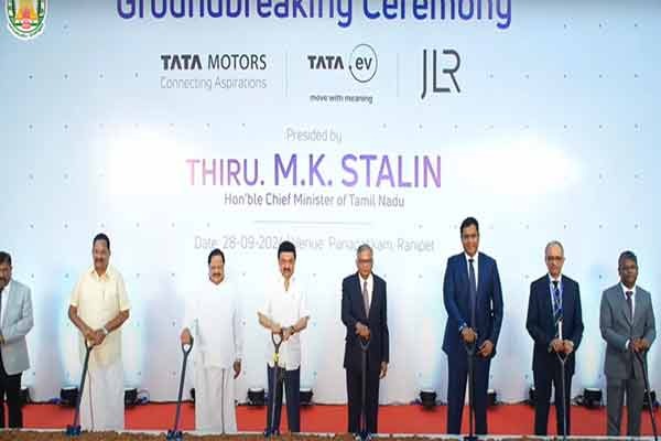ராணிப்பேட்டை பணப்பாக்கத்தில் ரூ.9,000 கோடியில் 470 ஏக்கரில் அமையவுள்ள டாடா ஜாக்குவார் லேண்ட் ரோவர் கார் உற்பத்தி ஆலைக்கு அடிக்கல் நாட்டினார் முதலமைச்சர் மு.க.ஸ்டாலின். ரூ.400 கோடி