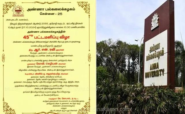 Read Moreఅన్నా యూనివర్సిటీ, చెన్నై. 27న క్యాంపస్లోని వివేకానంద హాల్లో 45వ స్నాతకోత్సవం నిర్వహించనున్నట్లు వారు ప్రకటించారు. గవర్నర్ రవి, ఉన్నత విద్యాశాఖ మంత్రి గోవి. చెహ్యాన్, నేషనల్