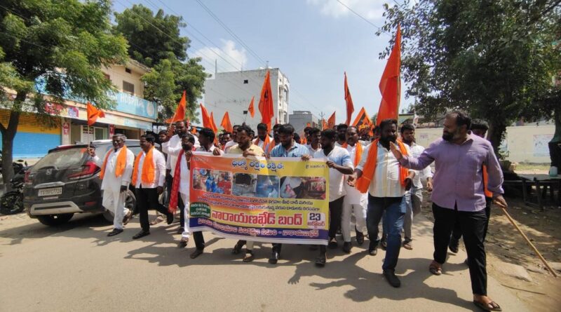 హిందు దేవి దేవతల విగ్రహల ద్వంసం చేయడం ద్వారా హిందు సంస్కృతిని నాశనం చేయాలనే దుర్మార్గపు చర్యను నిరసిస్తూ బుధవారం నారాయణఖేడ్ హిందు సంఘాలు మరియు వ్యాపారస్తులు