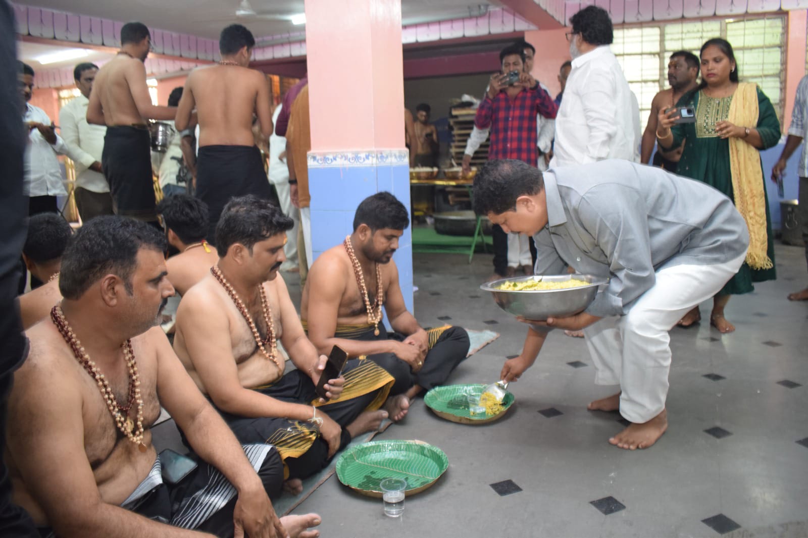 కే.పి.హెచ్.బి కాలనీ కన్యక పరామేశ్వరి దేవాలయంలో అయ్యప్ప స్వాముల అన్నప్రసాదం ( బిక్షా ) కార్యక్రమాన్ని ప్రారంభించిన ఎమ్మెల్యే మాధవరం కృష్ణారావు,కార్పొరేటర్లు మందాడి శ్రీనివాసరావు, జూపల్లి సత్యనారాయణ, మాజీ కార్పొరేటర్ బాబురావు, దేవాలయ చైర్మన్ కుమారస్వామీ