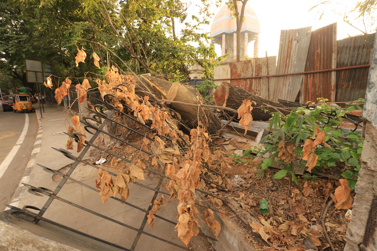 A very big tree in Valluvar Kottam area in Chennai suddenly broke and fell on the middle of the road yesterday. Due to this there was a traffic jam in the area. It is said that there will be a very large storm impact in Chennai.