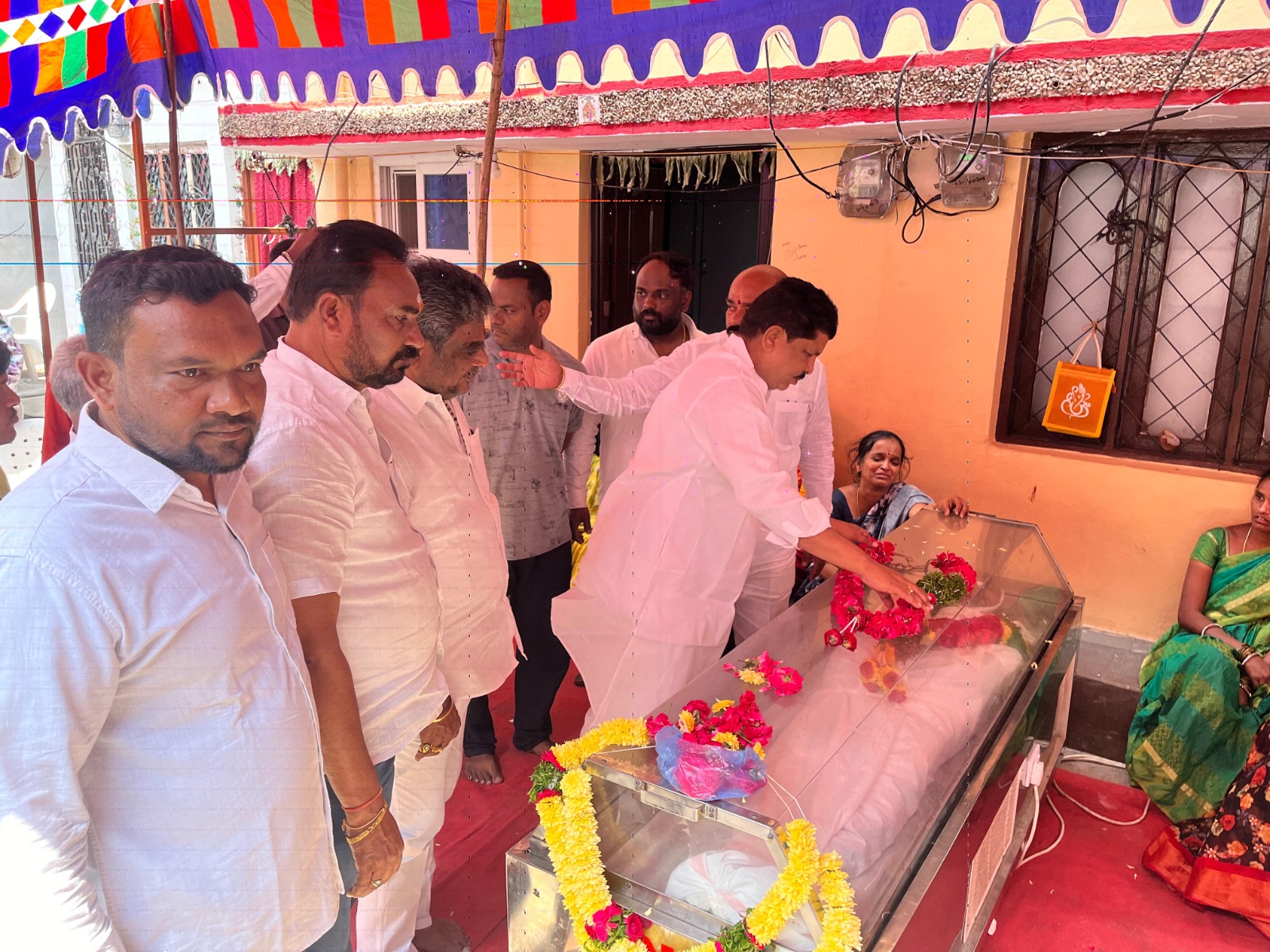 11.04.25 శుక్రవారం నాడు ఓల్డ్ బోయిన పల్లి డివిజన్ కు చెందిన ఇసుక రాజన్న గారి తండ్రి పెద్దింటి సాల్ రెడ్డి గారు స్వర్గస్తులైనారు అన్న విషయం తెలుసుకుని కూకట్పల్లి ఎమ్మెల్యే మాధవరం కృష్ణారావు గారు ఆయన నివాసానికి వెళ్లి వారి పార్థివదేహానికి నివాళులర్పించి వారి కుటుంబ సభ్యులకు తన ప్రగాఢ సానుభూతి తెలియజేశారు..