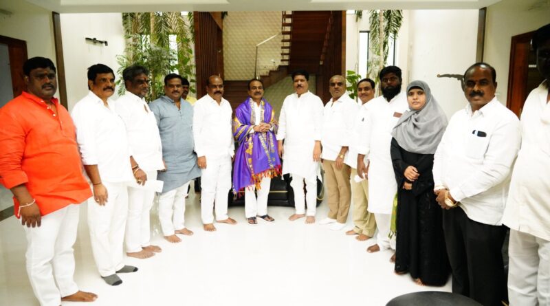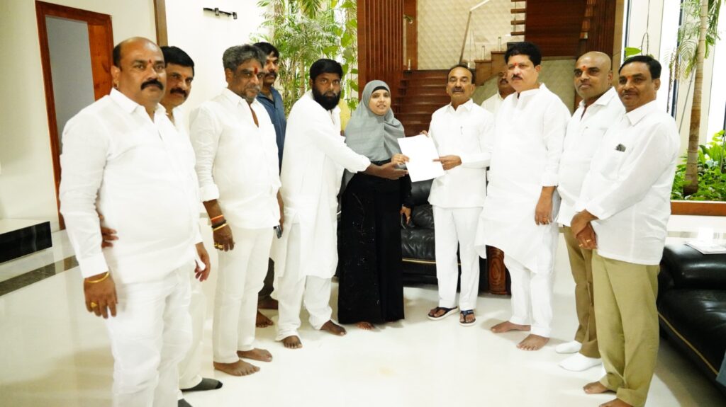 శనివారం కూకట్పల్లి ఎమ్మెల్యే మాధవరం కృష్ణారావు గారు నియోజకవర్గ కార్పొరేటర్లు తో మల్కాజ్గిరి ఎంపీ ఈటెల రాజేంద్ర గారిని కలిసి నియోజకవర్గ సమస్యలపై వినతి పత్రాన్ని అందించారు..ఇందులో ప్రధానంగా కేంద్ర ప్రభుత్వం ఆధీనంలో ఉన్న రైల్వే లైన్లు, రోడ్లుకు సంబంధించి సమస్యలు పరిష్కరించి నిధులు కేటాయించే విధంగా చర్యలు తీసుకోవాలని వివరించారు.. ముఖ్యంగా అల్లాపూర్ లోని యూసఫ్ నగర్ స్మశాన వాటిక నుంచి గాయత్రీ నగర్ వరకురైల్వే అండర్పాస్ లైన్ అలాగే మూసాపేట్ నుంచి రాజీవ్ గాంధీ నగర్ వరకు లింకు రోడ్డు పునరుద్ధరించి దాని నిర్మాణానికి సంబంధించి మరియు గుడ్ షెడ్ రోడ్డు రోడ్ నుంచి గ్లాస్ ఫ్యాక్టరీ వరకు రైల్వే అండర్ పాస్ నిర్మాణం చేపట్టే విధంగా …అలాగే నియోజకవర్గంలో డ్రైనేజ్ మరియు కమ్యూనిటీ హాల్స్ నిర్మాణం.. ఇతర మౌలిక సదుపాయాల కొరకు నిధులు కేటాయించాలని కోరారు ..దీనికి ఈటెల రాజేందర్ గారు సానుకూలంగా స్పందించడం జరిగింది ..ఈ కార్యక్రమంలో కార్పొరేటర్లు ముద్దం నరసింహ యాదవ్, పండాల సతీష్ గౌడ్, ఆవుల రవీందర్ రెడ్డి, జూపల్లి సత్యనారాయణ, మాజీ కార్పొరేటర్ పగుడాల బాబురావు, మేడ్చల్ జిల్లా మైనార్టీ అధ్యక్షుడు మహమ్మద్ గౌసిద్దీన్ .. మాజీ కార్పొరేటర్ తూము శ్రావణ్ కుమార్.. నాయకులు అంబటి శ్రీనివాస్ ,సత్యం, సంతోష్ తదితరులు పాల్గొన్నారు..