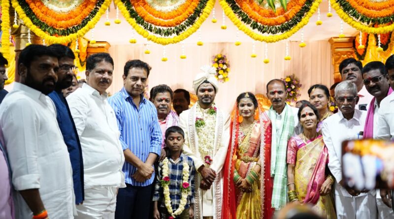 అల్లాపూర్ డివిజన్ కు చెందిన పేరేంట్ల శంకర్ కుమార్తె పవిత్ర – దుర్గ ప్రసాద్ వివాహము కు విచ్చేసిన బీఆర్ఎస్ వర్కింగ్ ప్రెసిడెంట్, మాజీ మంత్రివర్యులు శ్రీ