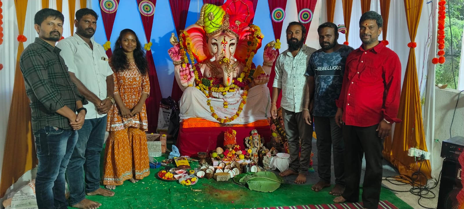 తెలంగాణ ప్రభుత్వం ఉచితంగా పేదల కొరకు కట్టించి ఇచ్చిన రెండు పడకల గదుల ఇంటిలోని ప్రజలందరూ చాల సంతోషం తో గణ నాధుని దర్శించుకుంటు పూజలు చేస్తు,బేధ